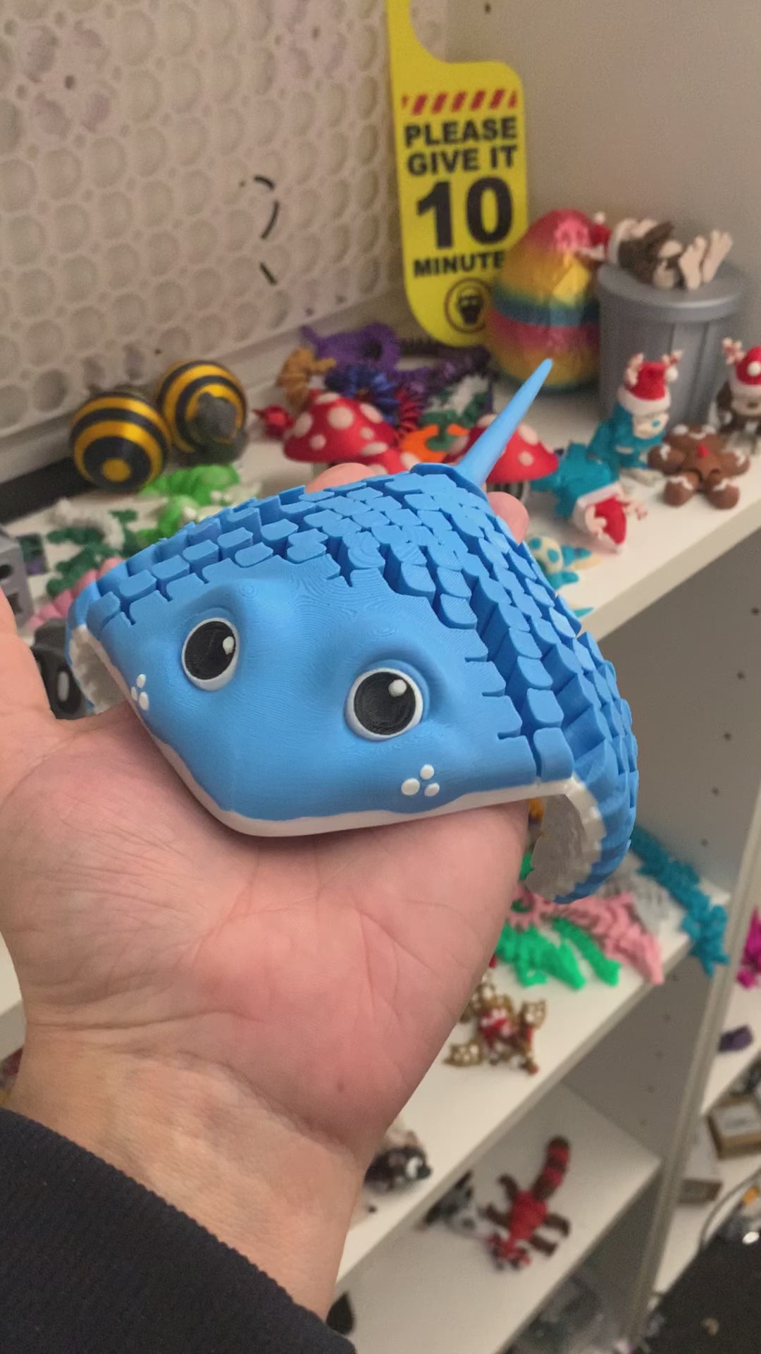 Den rolige blå farve og det venlige udtryk gør mantarokken perfekt som gave, skrivebordspynt eller som en del af en samling af søde 3D-printede figurer. Hver figur er 3D-printet og har derfor sit helt eget unikke udtryk.